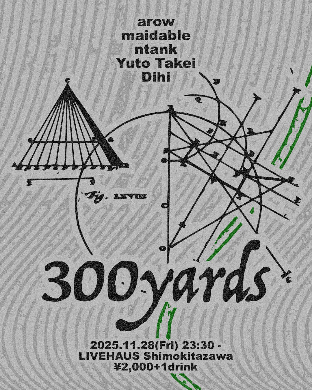 2025年11月28日の金曜日、東京を拠点に活動をするDJ Dihiが仕掛ける”300yards”が1年9か月ぶりに、下北沢LIVEHAUSにて開催される。