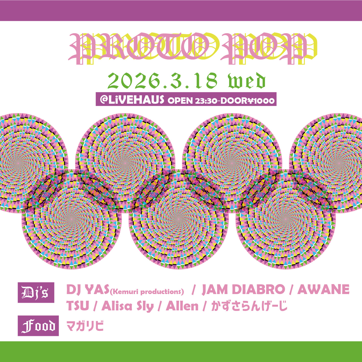 各界隈で活躍されてる方々がひとつに交わる貴重な日になると思いますので、踊りたい方はフロア!買い物したい方はPOP UPコーナー!ご飯食べたい方はお酒と一緒に!
