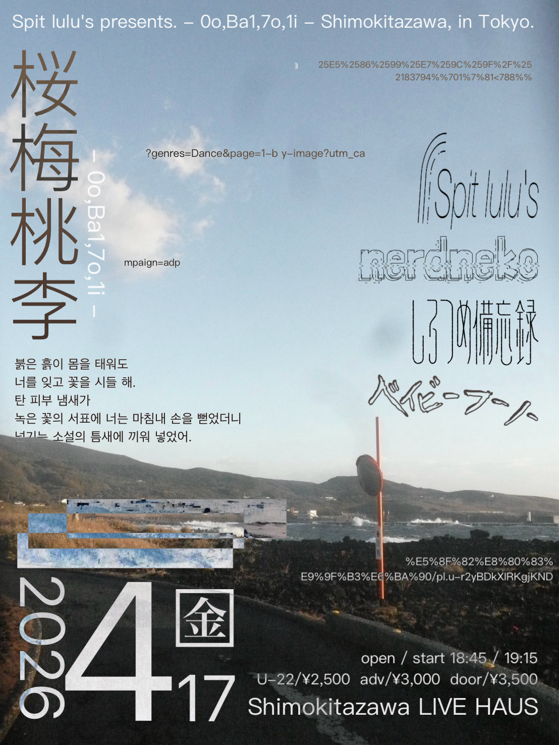 日 時 : 2026年4月11日(土)12:00開場/12:30開演 – 15:00終了
