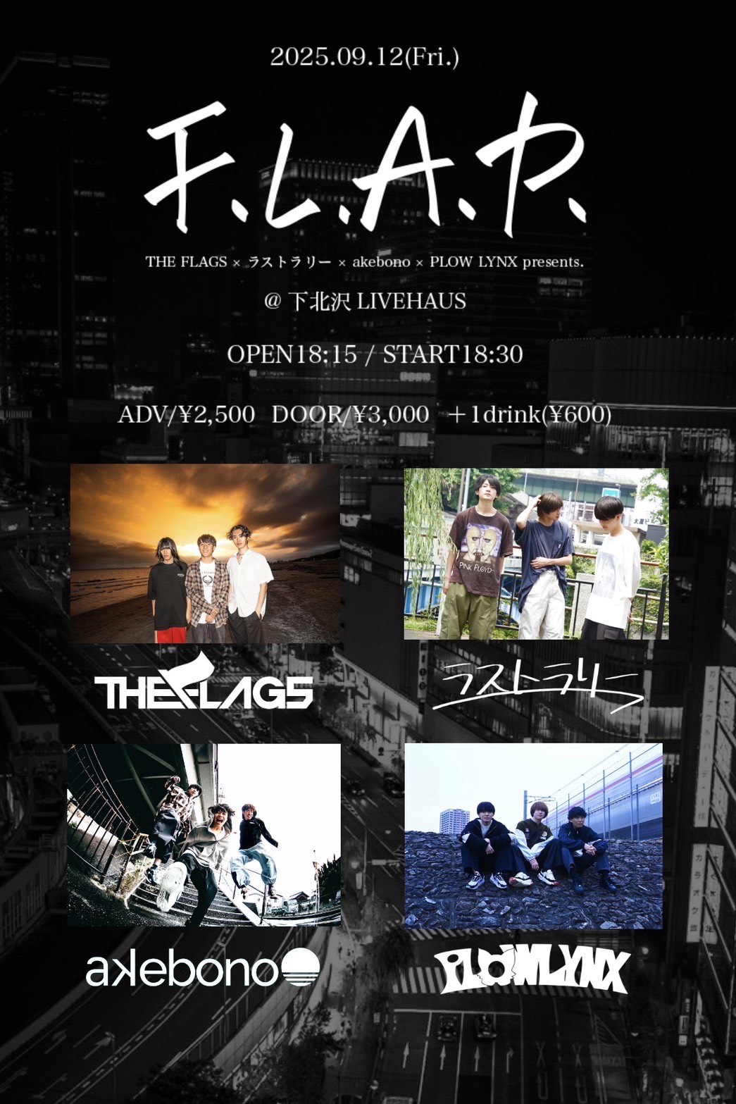 【夕夜公演】THE FLAGS × ラストラリー × akebono × 𝑷𝑳𝑶𝑾 𝑳𝒀𝑵𝑿 presents. 『F.L.A.P.』