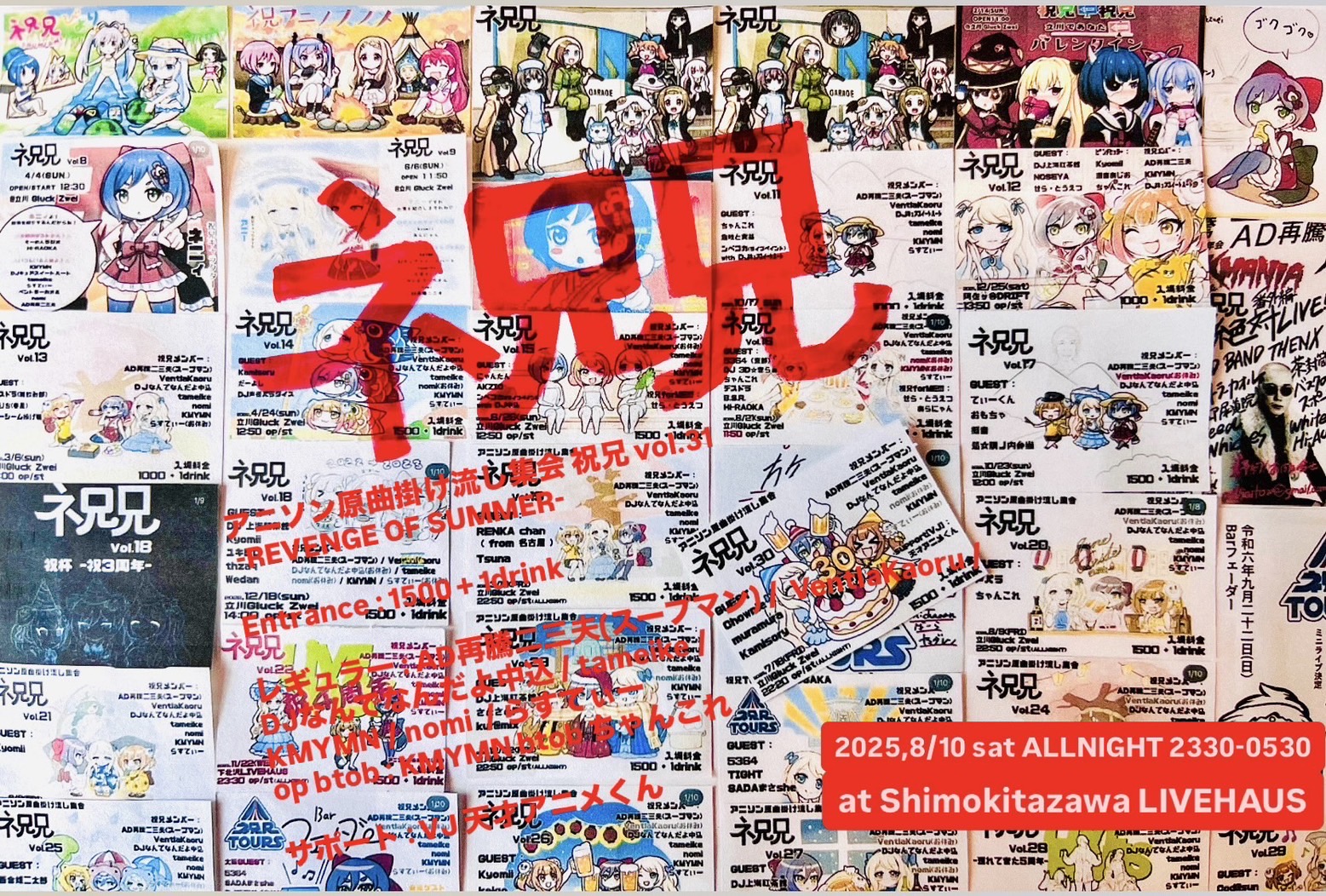 【深夜】アニソン原曲掛け流し集会 祝兄 vol.31 -REVENGE OF SUMMER-
