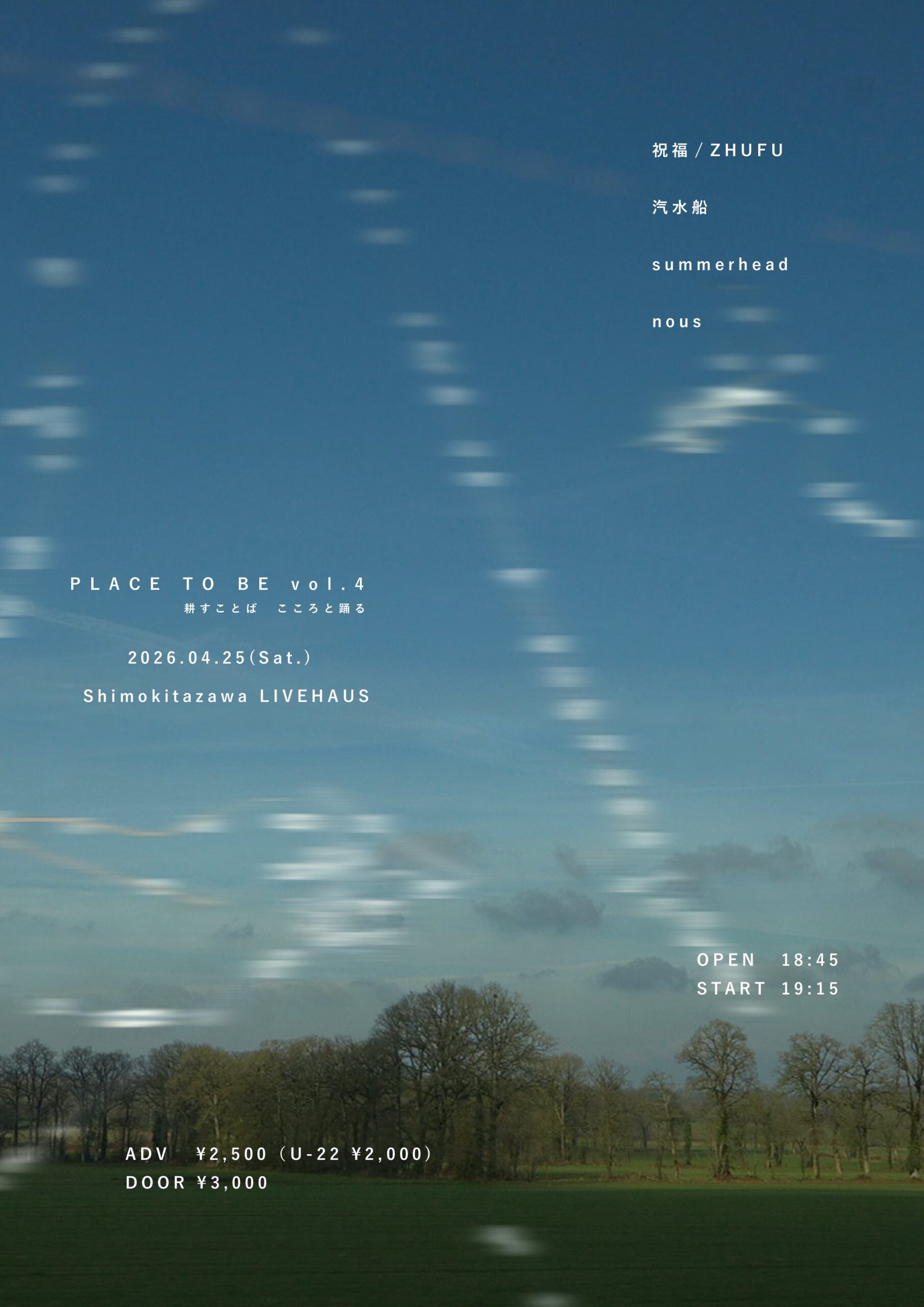 ADV ¥2,500 (+1drink) / DOOR ¥3,000 (+1drink)