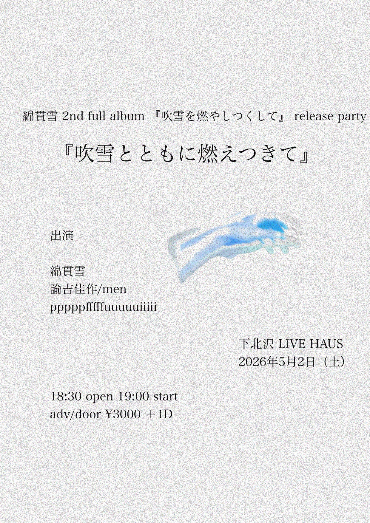 綿貫雪 2nd full album 『吹雪を燃やしつくして』 release party