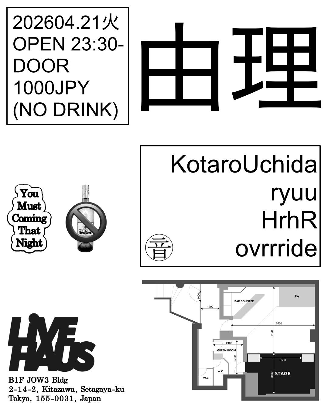 ADV ¥2,500/DOOR ¥3,000(+1Drink)